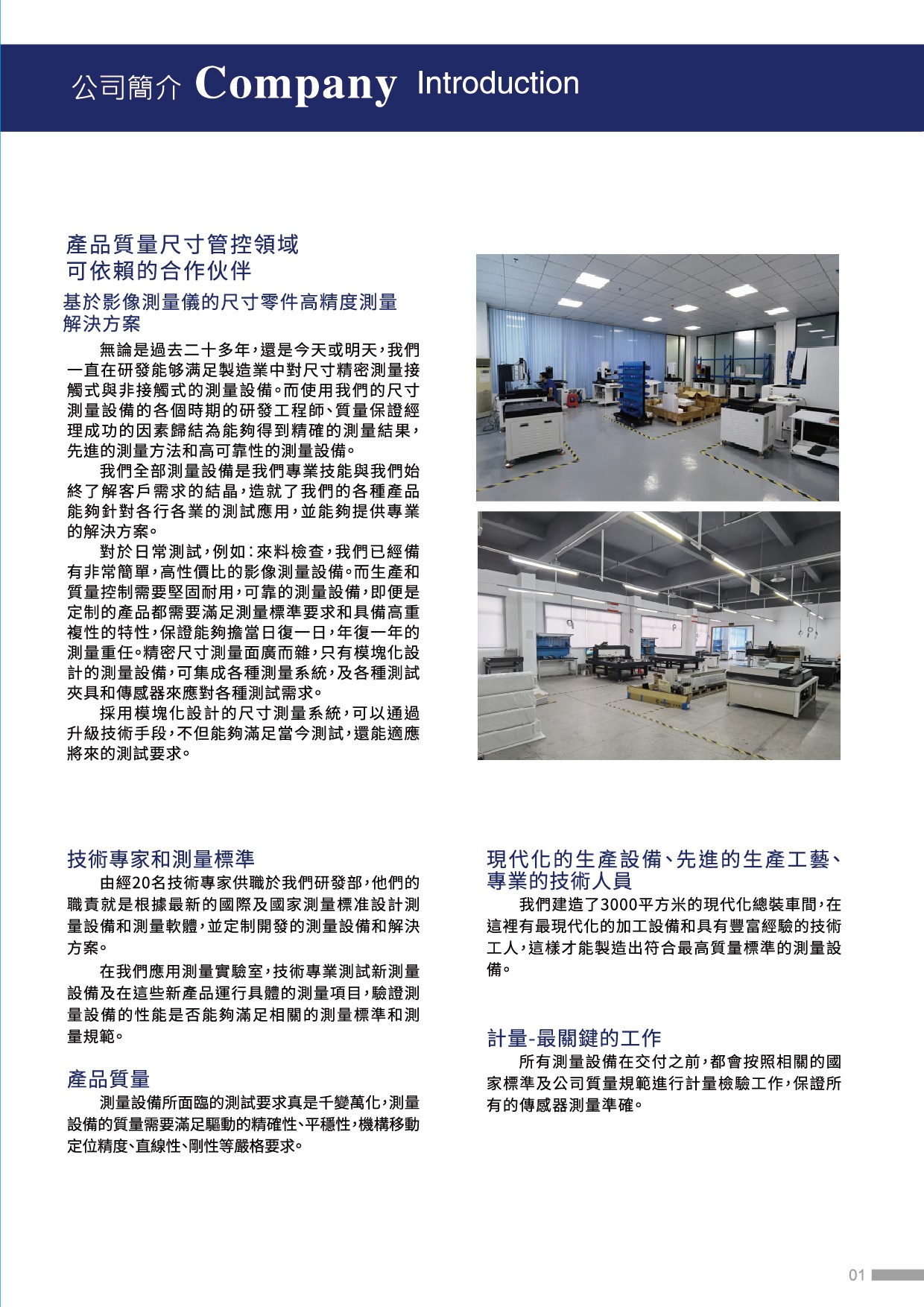 集結研發、生產以及經營銷售各類光學精密測量儀器,擁有最強的研發團隊,除了不斷推出功能強大且實用的軟體外,儀器本身之設計製作,亦由本公司研發團隊同步整合完成,可將軟硬體達到最佳效能之搭配,由本公司自行設計開發之產品,C/P值更優於其他廠牌同等級之儀器。